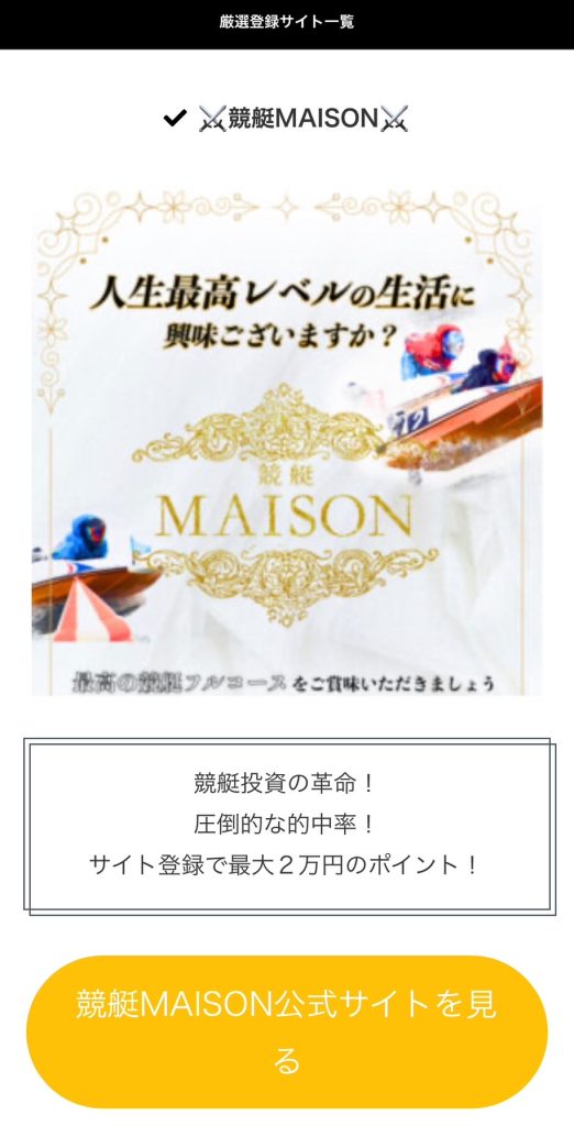 今回は、競艇王アリババがよく使っている【競艇メゾン】を紹介します!